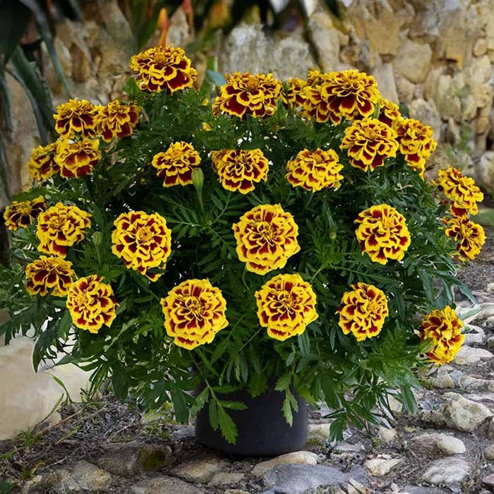 2025 AAS Winner and Fleuroselect Approved Novelty! Stunning, semi-double, 2 1/2 to 3 1/2", bicolor blooms are super-saturated in intense shades of yellow and red. Begins blooming early and continues to flower prolifically over a long period creating an eye-catching display all summer long. Low maintenance, complant plants are vigorous, uniform and do not require dead heading. Pollinator friendly. Great for packs and premium pots at retail. Perfect for beds, borders, containers and landscapes. Excellent heat tolerance. Spreads 6 to 8". 8-10". Annual. De-tailed seed only.
